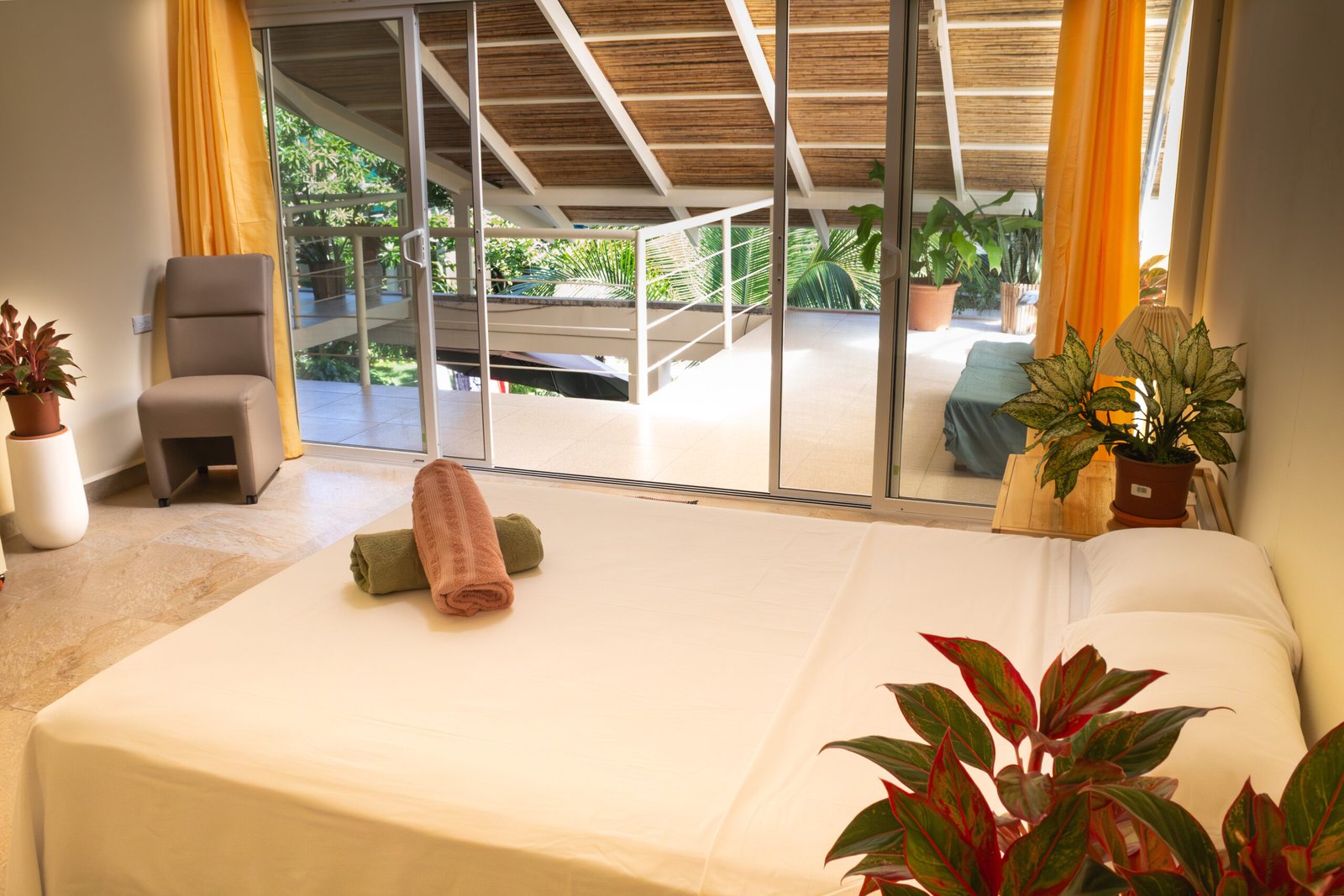 Enjoy our newly built, spacious, and bright room, designed to offer you comfort and modernity in every detail. Its elegant finishes, comfortable beds, and functional furniture create a space intended for your stay to be pleasant and worry-free. Relax in a cozy environment that combines style and comfort while enjoying the natural light flooding the room. Additionally, it features a large terrace with a view of the garden, perfect for resting or enjoying a moment outdoors. Every corner has been carefully designed to provide you with a unique and unforgettable experience. Come and discover the difference of staying in a place that truly cares for you!